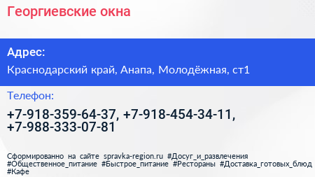Георгиевские окна по адресу Краснодарский край, Анапа, Молодёжная, ст1 в дальнейшем Организация, размещена в следующих категориях: