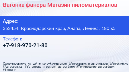 Вагонка-фанера, Магазин пиломатериалов по адресу 353454, Краснодарский край, Анапа, Ленина, 180 к5 в дальнейшем Организация, размещена в следующих категориях: