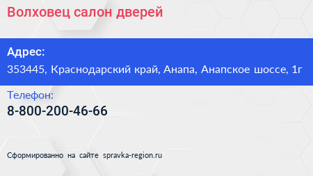 Волховец, салон дверей по адресу 353445, Краснодарский край, Анапа, Анапское шоссе, 1г в дальнейшем Организация, размещена в следующих категориях:
