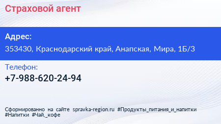 Страховой агент по адресу 353430, Краснодарский край, Анапская, Мира, 1Б/3 в дальнейшем Организация, размещена в следующих категориях: