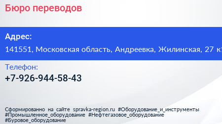 Бюро переводов по адресу 141551, Московская область, Андреевка, Жилинская, 27 к1 в дальнейшем Организация, размещена в следующих категориях: