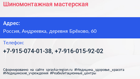 Шиномонтажная мастерская по адресу Клуб Транспортер Бус, 60, Пятницкое шоссе, Школьный микрорайон, Брёхово, городской округ Химки, Московская область, Центральный федеральный округ, 141544, Россия в дальнейшем Организация, размещена в следующих категориях:
