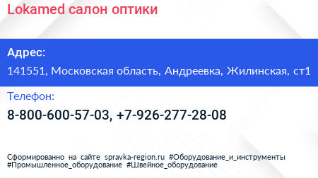 Lokamed, салон оптики по адресу 141551, Московская область, Андреевка, Жилинская, ст1 в дальнейшем Организация, размещена в следующих категориях: