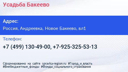 Усадьба Бакеево по адресу 1, улица Новое Бакеево, Коттеджный посёлок «Новое Бакеево», Бакеево, городской округ Солнечногорск, Московская область, Центральный федеральный округ, 141551, Россия в дальнейшем Организация, размещена в следующих категориях: