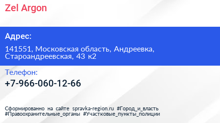 Zel-Argon по адресу 141551, Московская область, Андреевка, Староандреевская, 43 к2 в дальнейшем Организация, размещена в следующих категориях: