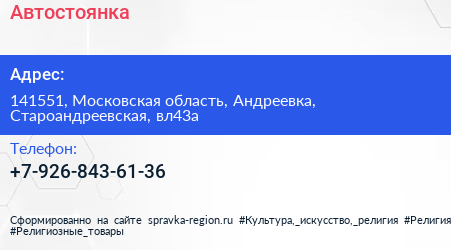 Автостоянка по адресу 141551, Московская область, Андреевка, Староандреевская, вл43а в дальнейшем Организация, размещена в следующих категориях: