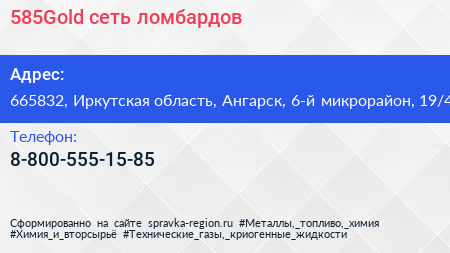 585Gold, сеть ломбардов по адресу 665832, Иркутская область, Ангарск, 6-й микрорайон, 19/4 в дальнейшем Организация, размещена в следующих категориях: