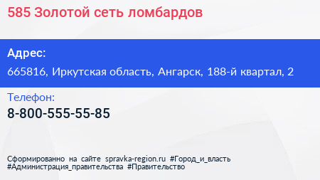 585*Золотой, сеть ломбардов по адресу 665816, Иркутская область, Ангарск, 188-й квартал, 2 в дальнейшем Организация, размещена в следующих категориях: