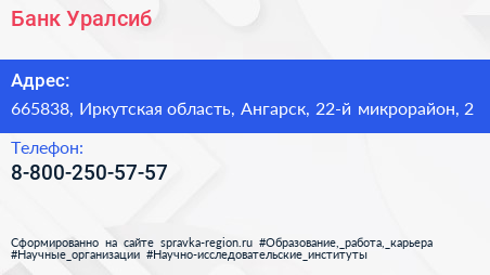 Банк Уралсиб по адресу 665838, Иркутская область, Ангарск, 22-й микрорайон, 2 в дальнейшем Организация, размещена в следующих категориях: