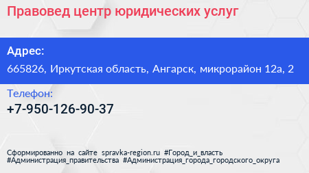 Правовед, центр юридических услуг по адресу 665826, Иркутская область, Ангарск, микрорайон 12а, 2 в дальнейшем Организация, размещена в следующих категориях: