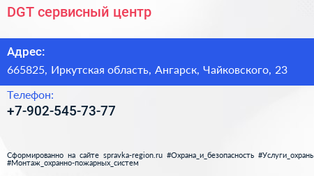 DGT, сервисный центр по адресу 665825, Иркутская область, Ангарск, Чайковского, 23 в дальнейшем Организация, размещена в следующих категориях: