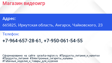 Магазин видеоигр по адресу 665825, Иркутская область, Ангарск, Чайковского, 23 в дальнейшем Организация, размещена в следующих категориях: