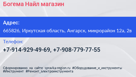 Богема Найл, магазин по адресу 665826, Иркутская область, Ангарск, микрорайон 12а, 2в в дальнейшем Организация, размещена в следующих категориях: