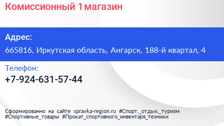 Комиссионный №1, магазин по адресу 665816, Иркутская область, Ангарск, 188-й квартал, 4 в дальнейшем Организация, размещена в следующих категориях:
