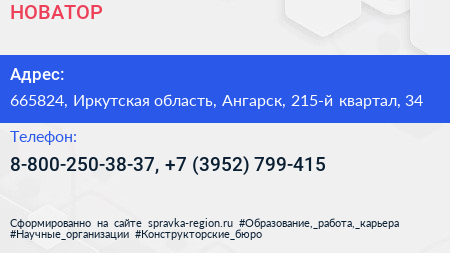 НOВАТОР по адресу 665824, Иркутская область, Ангарск, 215-й квартал, 34 в дальнейшем Организация, размещена в следующих категориях: