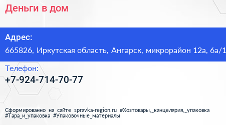 Деньги в дом по адресу 665826, Иркутская область, Ангарск, микрорайон 12а, 6а/1 в дальнейшем Организация, размещена в следующих категориях: