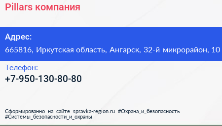 Pillars, компания по адресу 665816, Иркутская область, Ангарск, 32-й микрорайон, 10 в дальнейшем Организация, размещена в следующих категориях: