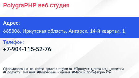 PolygraPHP, веб-студия по адресу 665806, Иркутская область, Ангарск, 14-й квартал, 1 в дальнейшем Организация, размещена в следующих категориях: