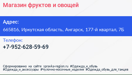 Магазин фруктов и овощей по адресу 665816, Иркутская область, Ангарск, 177-й квартал, 7Б в дальнейшем Организация, размещена в следующих категориях: