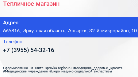 Тепличное, магазин по адресу 665816, Иркутская область, Ангарск, 32-й микрорайон, 10 в дальнейшем Организация, размещена в следующих категориях: