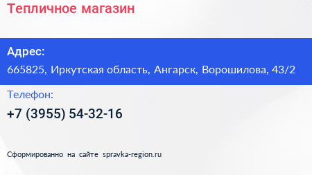 Тепличное, магазин по адресу 665825, Иркутская область, Ангарск, Ворошилова, 43/2 в дальнейшем Организация, размещена в следующих категориях: