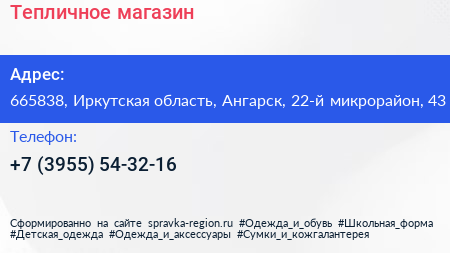 Тепличное, магазин по адресу 665838, Иркутская область, Ангарск, 22-й микрорайон, 43 в дальнейшем Организация, размещена в следующих категориях:
