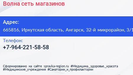 Волна, сеть магазинов по адресу 665816, Иркутская область, Ангарск, 32-й микрорайон, 3/1 в дальнейшем Организация, размещена в следующих категориях: