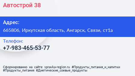 Автострой 38 по адресу 665806, Иркутская область, Ангарск, Связи, ст1а в дальнейшем Организация, размещена в следующих категориях:
