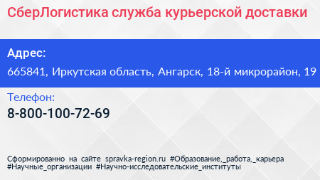 СберЛогистика, служба курьерской доставки по адресу 665841, Иркутская область, Ангарск, 18-й микрорайон, 19 в дальнейшем Организация, размещена в следующих категориях: