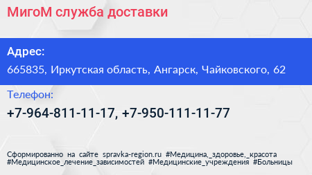 МигоМ, служба доставки по адресу 665835, Иркутская область, Ангарск, Чайковского, 62 в дальнейшем Организация, размещена в следующих категориях: