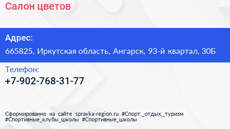 Салон цветов по адресу 665825, Иркутская область, Ангарск, 93-й квартал, 30Б в дальнейшем Организация, размещена в следующих категориях: