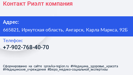 Контакт Риэлт, компания по адресу 665821, Иркутская область, Ангарск, Карла Маркса, 92Б в дальнейшем Организация, размещена в следующих категориях: