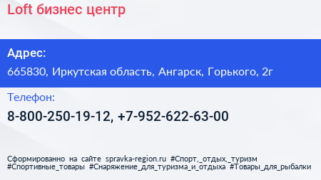 Loft, бизнес-центр по адресу 665830, Иркутская область, Ангарск, Горького, 2г в дальнейшем Организация, размещена в следующих категориях: