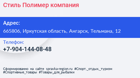Стиль-Полимер, компания по адресу 665806, Иркутская область, Ангарск, Тельмана, 12 в дальнейшем Организация, размещена в следующих категориях: