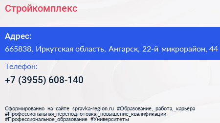 Стройкомплекс по адресу 665838, Иркутская область, Ангарск, 22-й микрорайон, 44 в дальнейшем Организация, размещена в следующих категориях:
