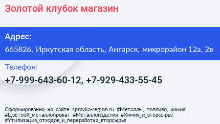 Адрес: Иркутская область, Ангарск, 177-й квартал, 12