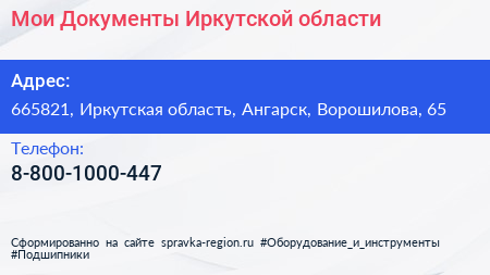 Мои Документы Иркутской области по адресу 665821, Иркутская область, Ангарск, Ворошилова, 65 в дальнейшем Организация, размещена в следующих категориях: