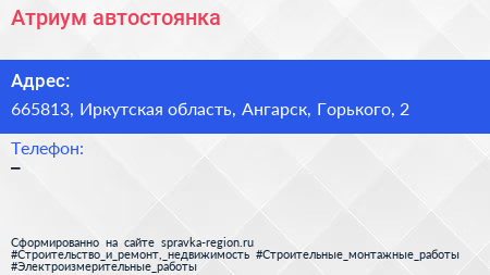 Атриум, автостоянка по адресу 665813, Иркутская область, Ангарск, Горького, 2 в дальнейшем Организация, размещена в следующих категориях: