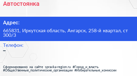 Автостоянка по адресу 665831, Иркутская область, Ангарск, 258-й квартал, ст 300/3 в дальнейшем Организация, размещена в следующих категориях: