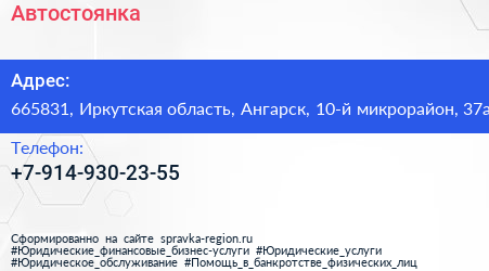 Автостоянка по адресу 665831, Иркутская область, Ангарск, 10-й микрорайон, 37а в дальнейшем Организация, размещена в следующих категориях: