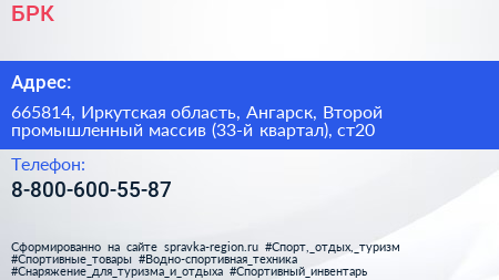 БРК по адресу 665814, Иркутская область, Ангарск, Второй промышленный массив (33-й квартал), ст20 в дальнейшем Организация, размещена в следующих категориях: