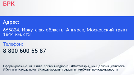 БРК по адресу 665824, Иркутская область, Ангарск, Московский тракт 1844 км, ст3 в дальнейшем Организация, размещена в следующих категориях: