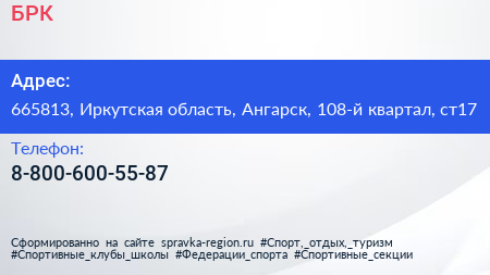 БРК по адресу 665813, Иркутская область, Ангарск, 108-й квартал, ст17 в дальнейшем Организация, размещена в следующих категориях: