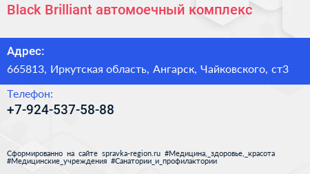 Black Brilliant, автомоечный комплекс по адресу 665813, Иркутская область, Ангарск, Чайковского, ст3 в дальнейшем Организация, размещена в следующих категориях:
