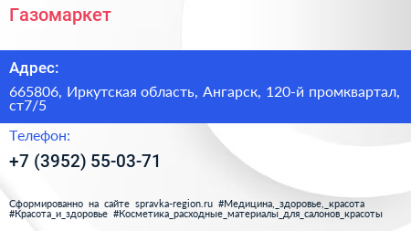 Газомаркет по адресу 665806, Иркутская область, Ангарск, 120-й промквартал, ст7/5 в дальнейшем Организация, размещена в следующих категориях: