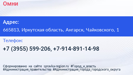 Омни по адресу 665813, Иркутская область, Ангарск, Чайковского, 1 в дальнейшем Организация, размещена в следующих категориях: