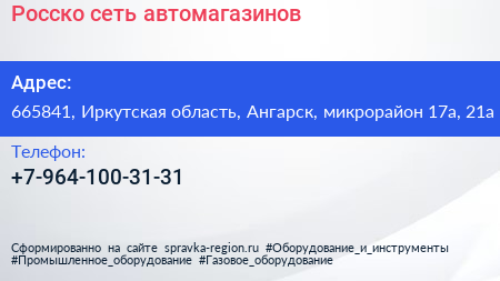 Росско, сеть автомагазинов по адресу 665841, Иркутская область, Ангарск, микрорайон 17а, 21а в дальнейшем Организация, размещена в следующих категориях: