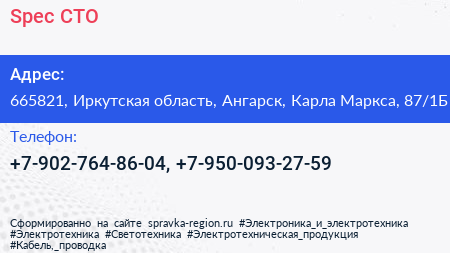 Spec, СТО по адресу 665821, Иркутская область, Ангарск, Карла Маркса, 87/1Б в дальнейшем Организация, размещена в следующих категориях: