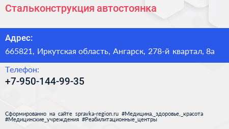 Стальконструкция, автостоянка по адресу 665821, Иркутская область, Ангарск, 278-й квартал, 8а в дальнейшем Организация, размещена в следующих категориях: