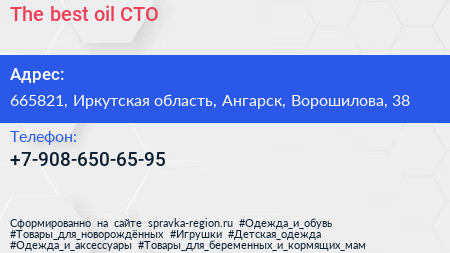 The best oil, СТО по адресу 665821, Иркутская область, Ангарск, Ворошилова, 38 в дальнейшем Организация, размещена в следующих категориях: